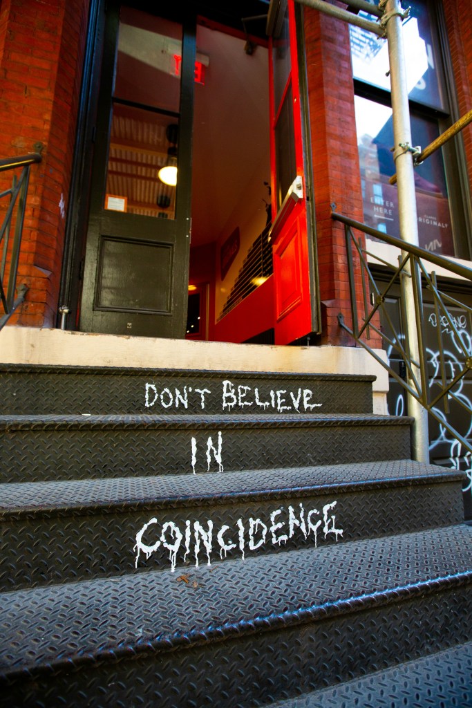 I have this weird thing where almost every day, often a few times a day, I’ll be reading or writing something and something in the background, usually tv, says that word at almost the same time. Or I’ll be driving and a word comes up in my constant inner monologue only to look up and see it on a billboard or sign.