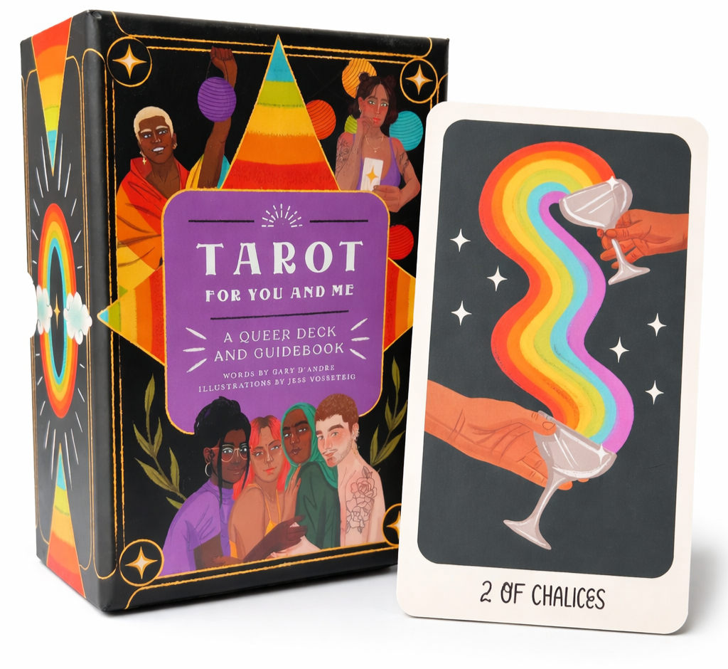 While I believe witchcraft is inherently political, and I am extremely political, I’m not going to get into it here. That said, in light of all the horrific attacks on the LGBTQIA+ community, I’m going to use the Tarot for You and Me: A Queer Deck and Guidebook by Gary D’Andre (words) and Jess Vosseteig (illustrations) as a shoutout to that beautiful and resilient community.